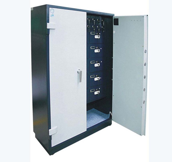 材质:优质碳化钢,柜体钢板厚度:8mm 柜门钢板厚度:10mm 柜子净重:200KG。开门方式:刷卡、密码、指纹、人脸识别多种方式认证(组合可选)。